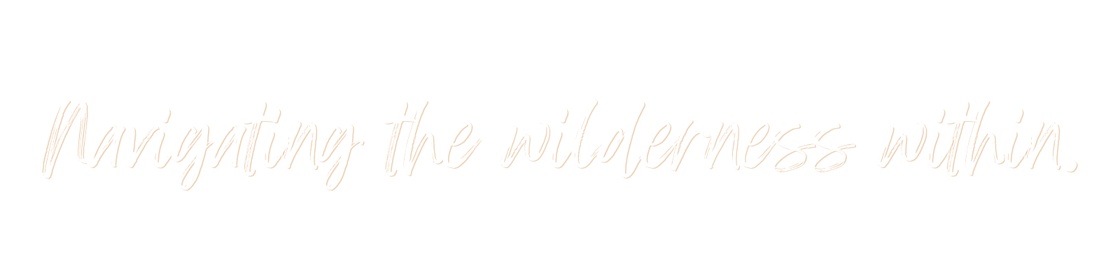 Inspirational quote written in white cursive font: 'Navigating the wilderness within.'